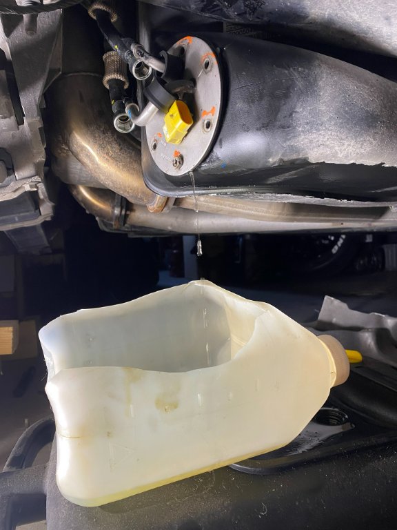 Trots det fick jag ur ca 4 liter ur tanken när jag lossade bultarna. När jag sedan tog ur givaren kom det en skvätt till.